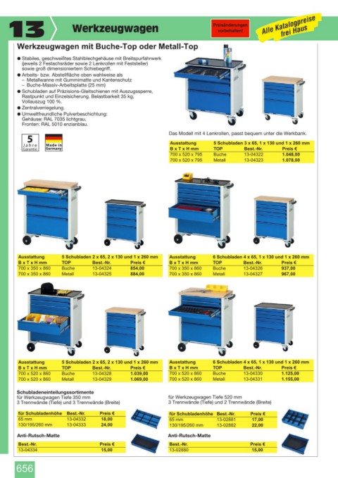 Werkzeugwagen mit Buche-Top oder Metall-Top