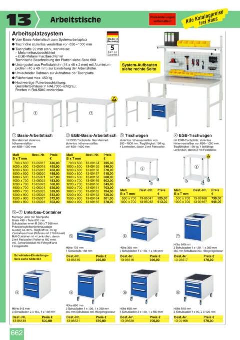 $ Basis-Arbeitstisch % EGB-Basis-Arbeitstisch & Tischwagen ( EGB-Tischwagen
