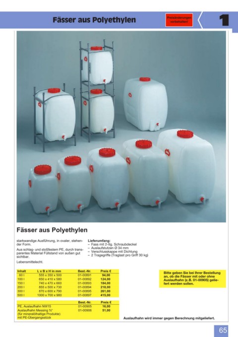 60 l 555 x 350 x 500 01-00891 94,00 an, ob die Fässer mit oder ohne