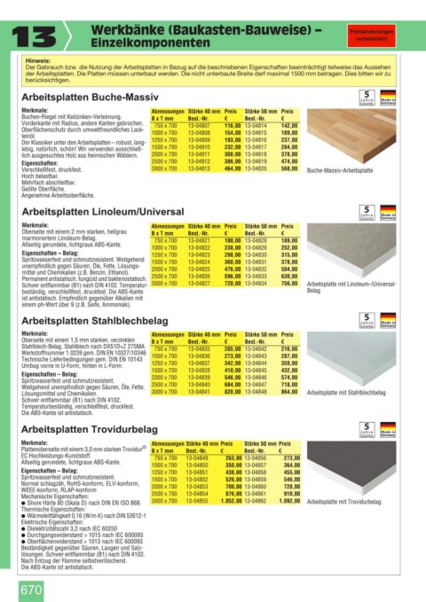 Eigenschaften – Belag: 1000 x 700 13-04822 238,00 13-04829 315,00