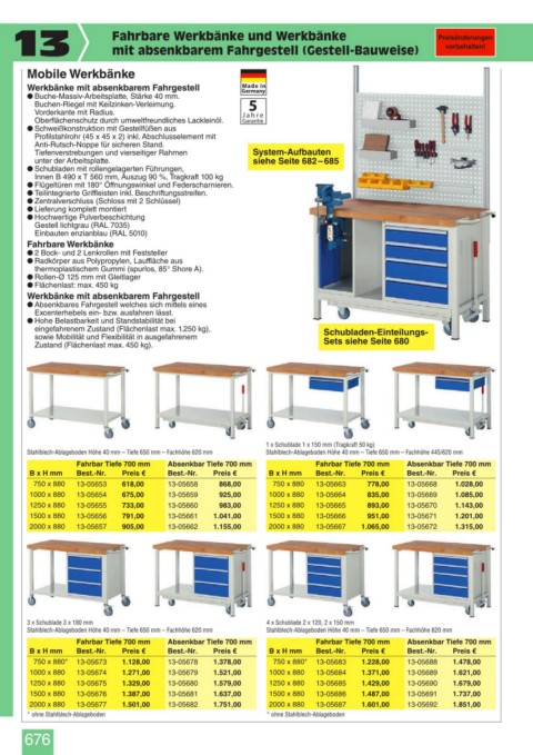 13 Fahrbare Werkbänke und Werkbänke Preisänderungen