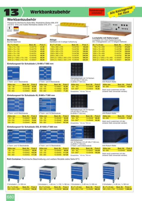 und 672 – 675) und mobile Werkbänke (Seiten 676, 677)