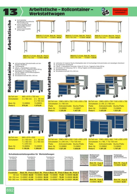 2800 x 700 x 840 13-08850 946,00 % wahlweise mit massiver Buche-Arbeitsplatte oder mit hochwertiger Antirutschmatte und vierseitigem Abrollrand