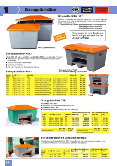 Inhalt 100–400 Liter – wie Streugutbehälter GFK mit zusätzlichen Vorteilen: