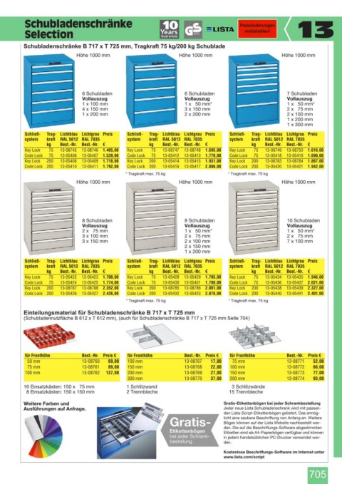 Ausführungen auf Anfrage. Jeder neue Lista Schubladenschrank wird mit passen-