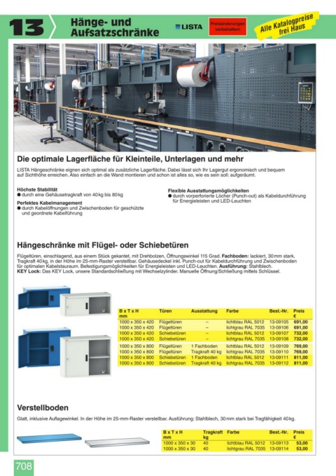 LISTA Hängeschränke eignen sich optimal als zusätzliche Lagerfläche. Dabei lässt sich Ihr Lagergut ergonomisch und bequem