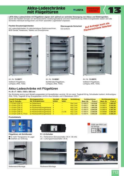 2 x 5-fach (230 V) an Rückwand/Energienkanal 3 2 x 95 Key Lock 13-08974 2.330,00 13-08980 2.583,00