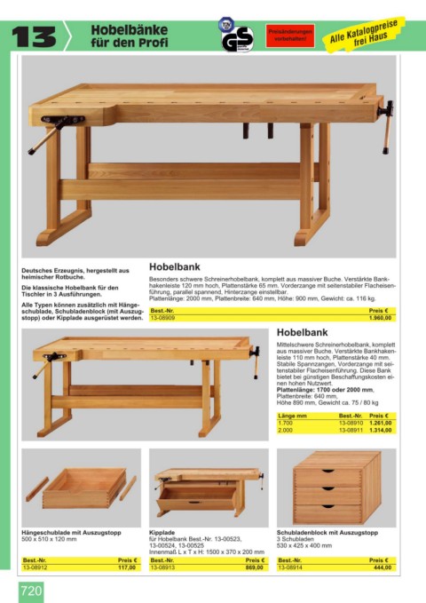 heimischer Rotbuche. Besonders schwere Schreinerhobelbank, komplett aus massiver Buche. Verstärkte Bank-