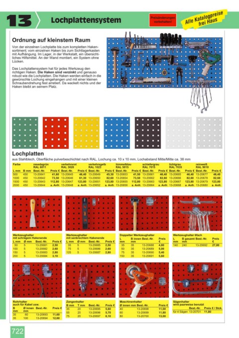 aus Stahlblech, Oberfläche pulverbeschichtet nach RAL, Lochung ca. 10 x 10 mm, Lochabstand Mitte/Mitte ca. 38 mm