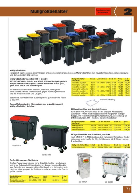 02-03411 Müllgroßbehälter Stahl Inhalt L x B x H in mm Best.-Nr. Preis 7
