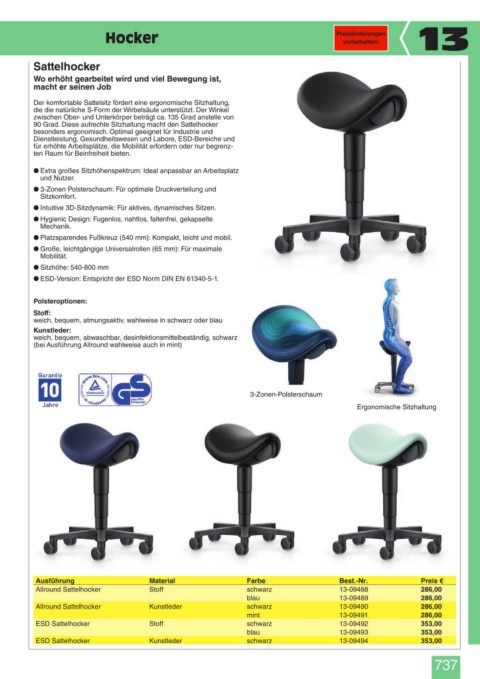 ESD Sattelhocker Stoff schwarz 13-09492 353,00
