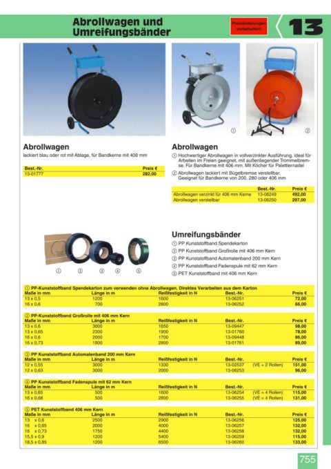 lackiert blau oder rot mit Ablage, für Bandkerne mit 406 mm $ Hochwertiger Abrollwagen in vollverzinkter Ausführung, ideal für
