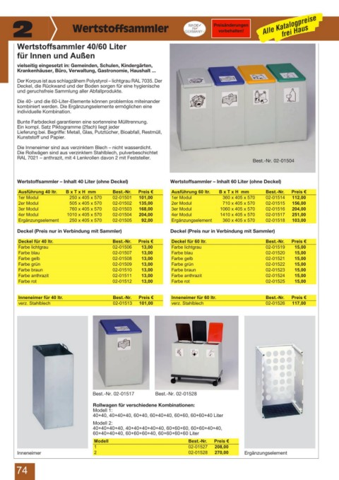 Ausführung 40 ltr. B x T x H mm Best.-Nr. Preis € Ausführung 60 ltr. B x T x H mm Best.-Nr. Preis €