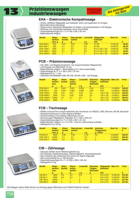 Modell Wäge- Ables- Reproduzier- Linearität Wägeplatte Best.-Nr. Preis