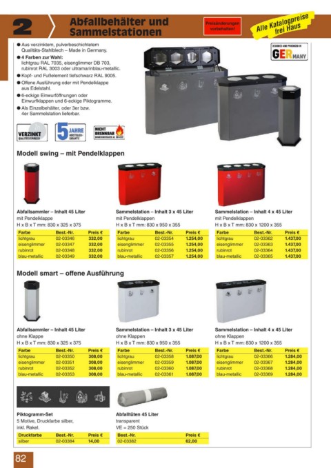 Abfallsammler – Inhalt 45 Liter Sammelstation – Inhalt 3 x 45 Liter Sammelstation – Inhalt 4 x 45 Liter