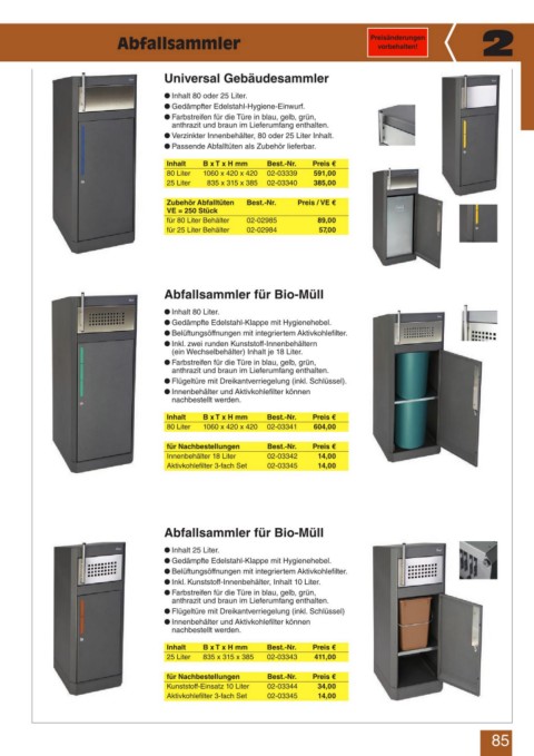 Abfallsammler Preisänderungen 2